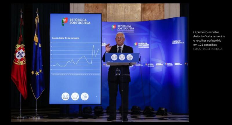 1 – Durante os dias úteis, o recolher obrigatório vigora entre as 23h00 e as 5h00 e ao fim-de-semana entre as 13h e as 5 horas da manhã, mas apenas nos dois fins-de-semana: 14/15 e 21/ 22. E aplica-se nos 121 concelhos que registarem mais de 240 novos casos por cem mil habitantes nos últimos 14 dias com o objectivo de travar as contaminações durante o mês de Novembro, frisou o primeiro-ministro.