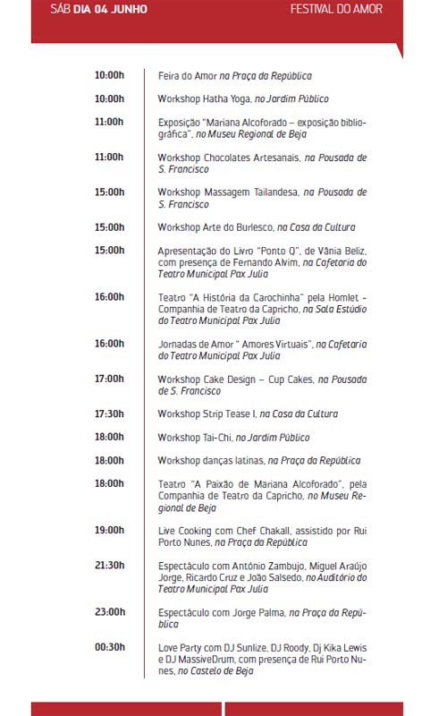 Responda, na caixa de comentários (deixando nome e endereço electrónico válidos) às seguintes questões sobre o Festival do Amor: