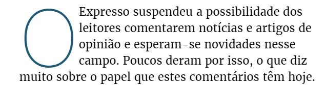 Um jornal que desiste de critérios editoriais não é um jornal, é um aterro. E os critérios editoriais têm de se aplicar a tudo o que seja publicado. Incluindo os comentários dos leitores. A sua publicação sem critérios não é sinal de respeito pela participação dos leitores. É o oposto. Não defendo apenas que se apaguem os comentários que não cumpram regras mínimas de civilidade. Defendo que apenas sejam publicados comentários com qualidade e sustentação para acrescentarem qualquer coisa ao debate. A emissora de rádio e televisão pública norueguesa criou, no seu site de tecnologia NRKbeta, um sistema de seleção de leitores: quem quiser comentar tem de responder a três perguntas sobre o texto. Só tem o direito a participar no debate sobre um artigo quem o leu. Dizer a quem participa no debate público que a liberdade de expressão dá trabalho é muito mais do que limpar o lixo das caixas de comentários. É contribuir para salvar a democracia, explicando de forma clara que o direito a ser ouvido traz consigo, como trazem todos os direitos, deveres. (ler artigo de Daniel Oliveira aqui