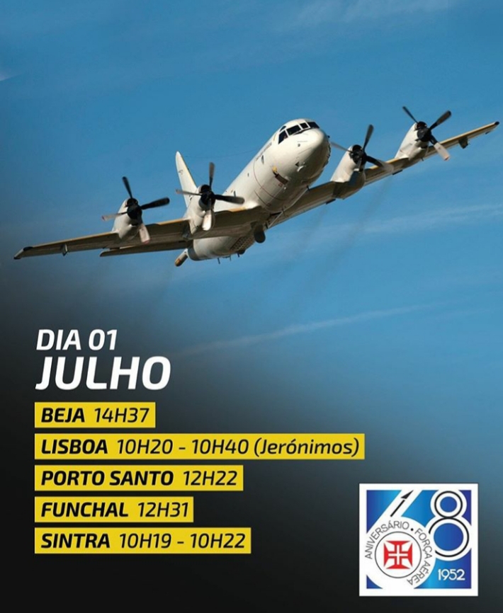 A Força Aérea assinala, amanhã, dia 1 de julho, o seu 68.º Aniversário com uma série de eventos adaptados às atuais circunstâncias, dos quais se destacam: passagens aéreas e a manobra “Missing Man” em homenagem às vítimas da Pandemia.