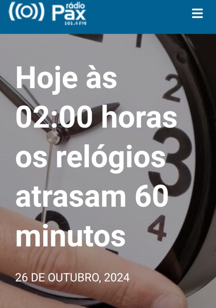 A mudança será feita no dia 27 de outubro. Neste dia, atrasamos 1 hora.