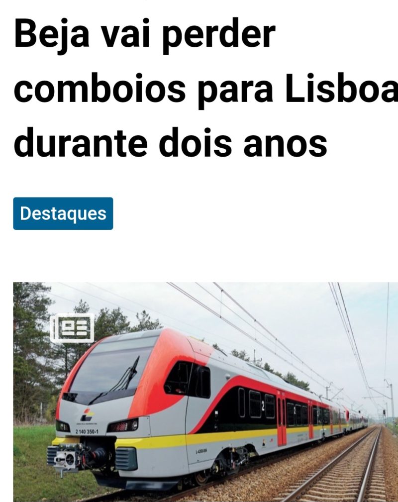 “Beja vai ficar dois anos, previsivelmente entre 2027 e 2029, sem comboios para Lisboa. A interrupção vai ocorrer durante o período em que vão decorrer as obras de eletrificação da linha ferroviária Beja-Casa Branca” in Radio Pax