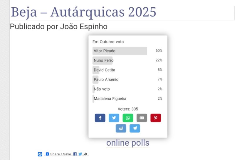 Criei, como já muitas vezes o fiz, esta poll, para avaliar as intenções de voto, nas autárquicas de outubro, dos leitores do blog.